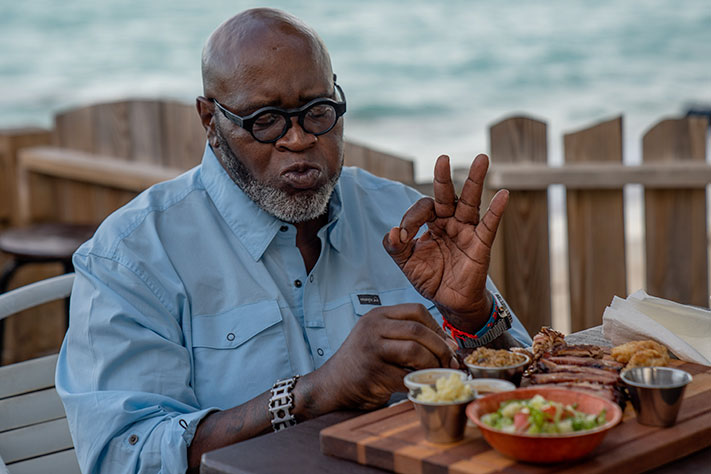 Big Moe explore la cuisine des Bahamas avec le chef Simeon Hall, pratique la plongée sous-marine pour pêcher la conque, s’approvisionne en bois de cèdre, chasse le crabe sur les rochers et se fabrique un barbecue avec une jante de pneu et un tabouret. Après avoir appris diverses techniques et recettes des Bahamas, il prépare un festin de barbecue à partager avec des amis.