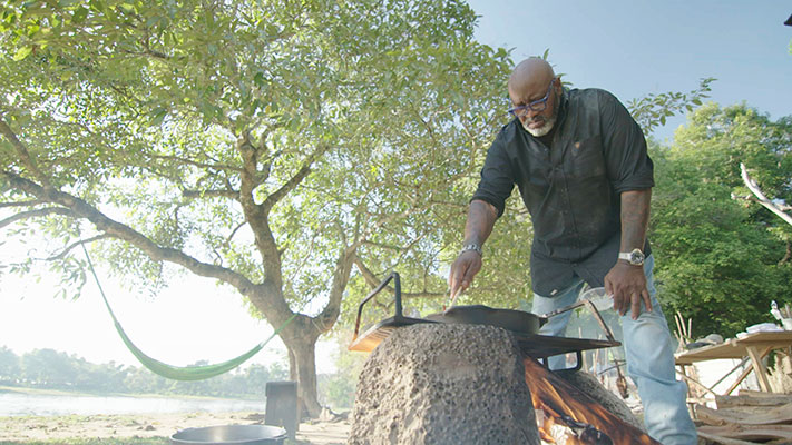 Dans les 4 épisodes que compte la série, il parcourt la planète pour découvrir de nouvelles cultures et servir des repas qui font honneur à la cuisine locale. Il pêche des conques fraîches aux Bahamas, fait rôtir des alligators en Louisiane, renoue avec ses racines en Caroline du Sud et brave des eaux infestées de piranhas en Colombie. En chemin, il redécouvre à quel point le barbecue américain puise son inspiration dans les cultures du monde entier.