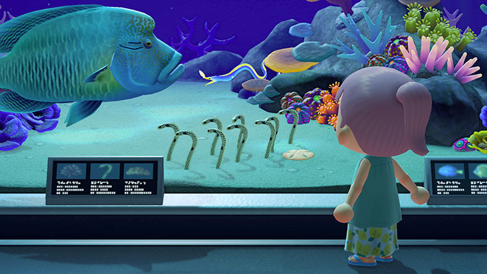 - C’est l’heure du grand bain ! – Munis d’une combinaison de plongée, explorez les eaux qui entourent votre petit bout de terre. En plongeant de-ci de-là, découvrez et collectez les différentes créatures marines qui peuplent les eaux environnantes, offrant ainsi l’occasion parfaite de remplir encore un peu plus le musée et de savourer de nouvelles anecdotes contées par Thibou.