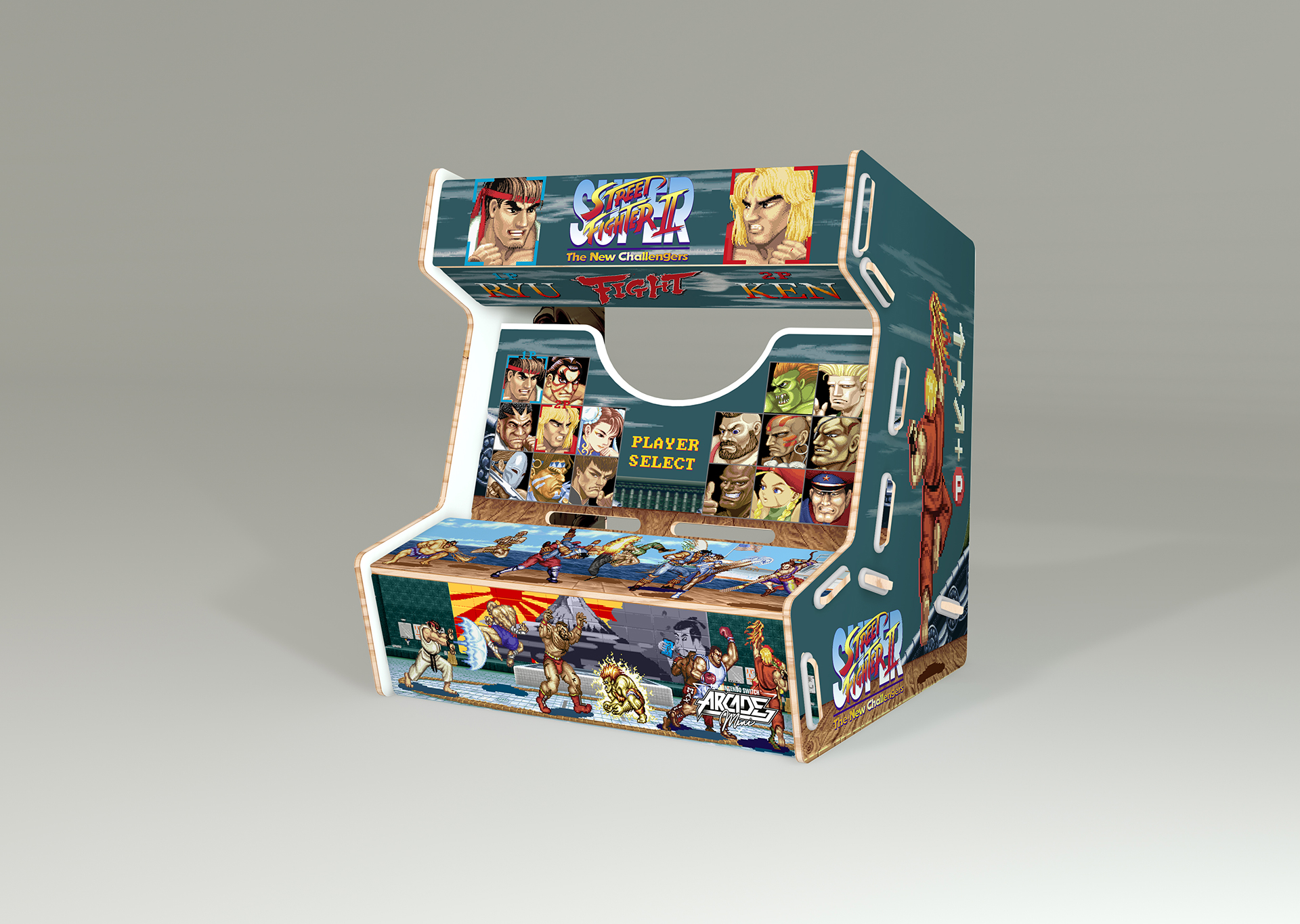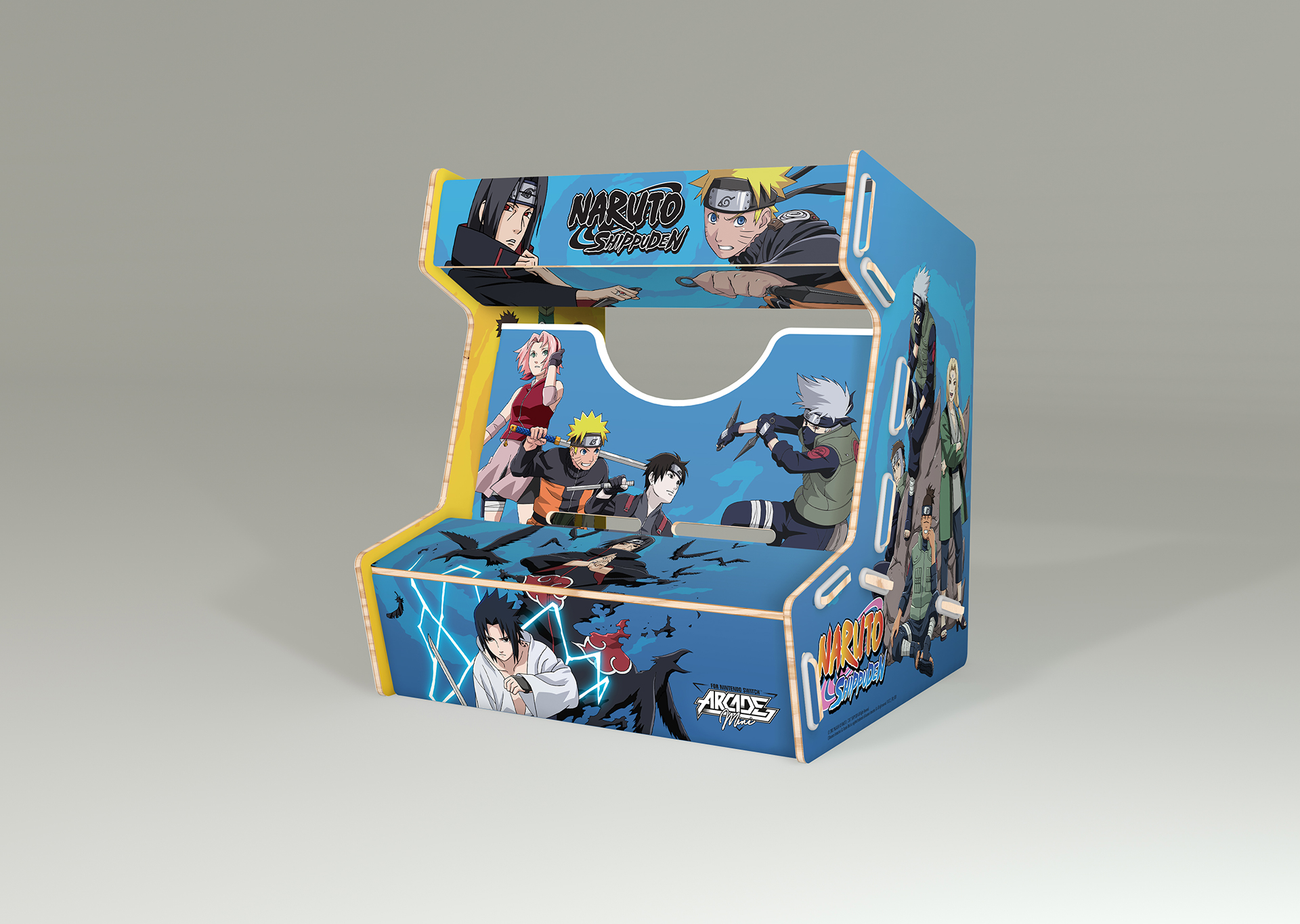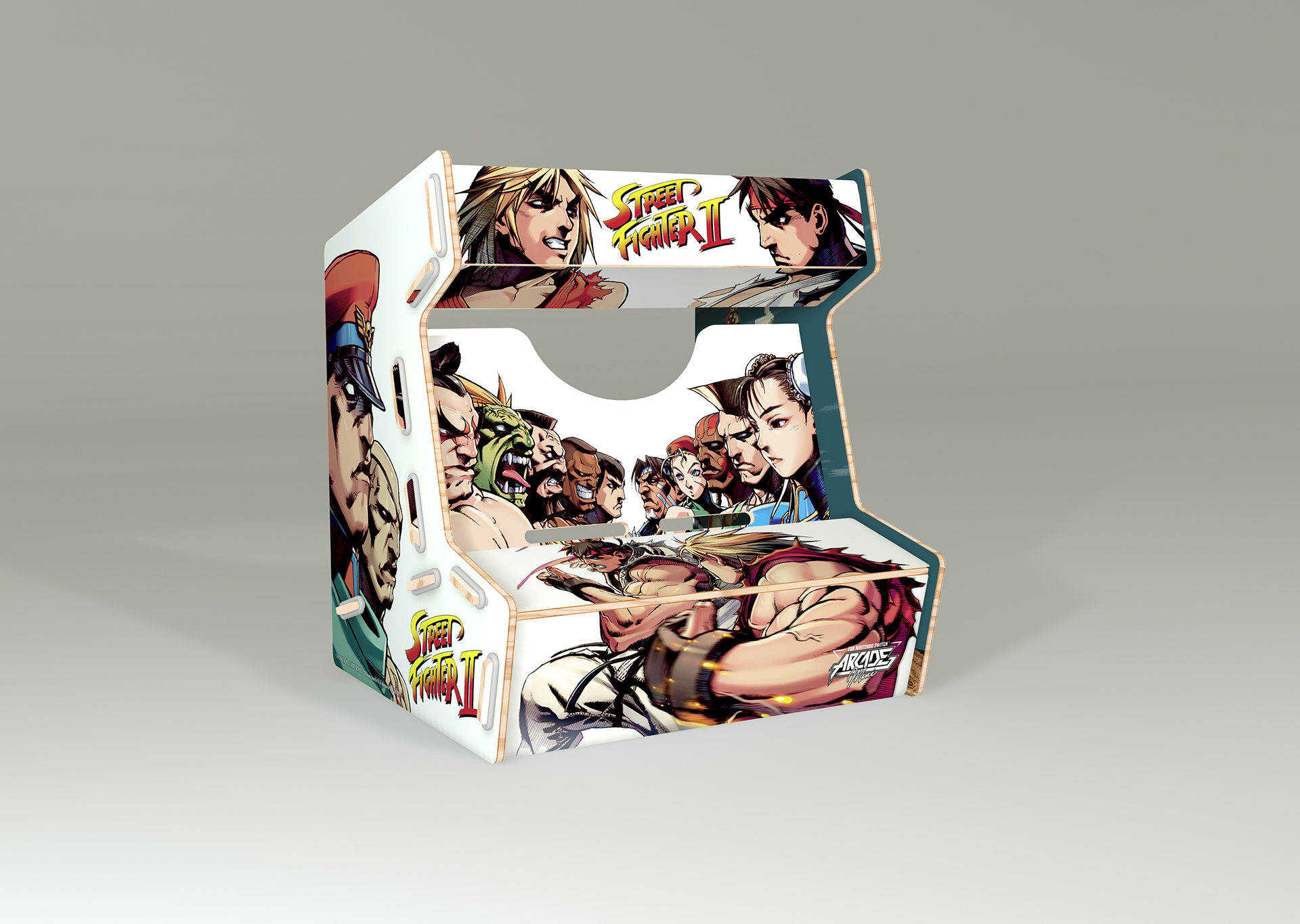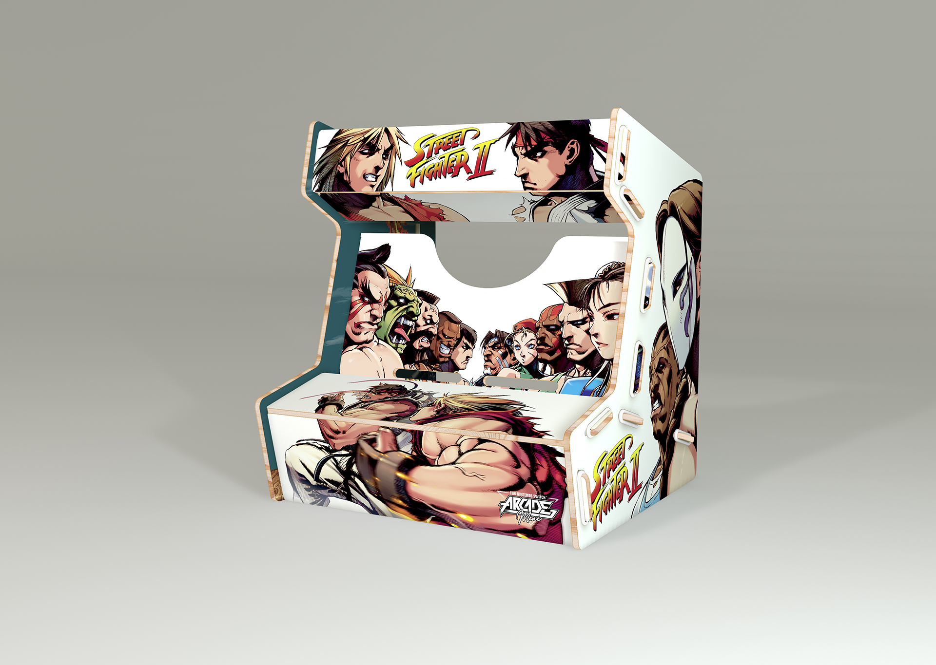 Réalisée en bois et imprimée aux couleurs de licences fortes, l’Arcade Mini se compose de 8 pièces faciles à assembler. Le maintien de la tablette Nintendo Switch dans la borne offre aux joueurs un confort de jeu total !
