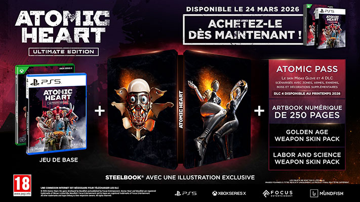 En parallèle de la sortie du DLC4 – Blood on Crystal, ceux qui souhaiteront découvrir Atomic Heart pourront profiter de sa toute nouvelle Édition Ultimate, disponible dès maintenant sur les boutiques en ligne officielles, et en version boîte chez les revendeurs participants. Cette version physique inclut un SteelBook exclusif, les 4 DLCs de l’Atomic Pass, et tous les cosmétiques et armes sortis à ce jour.