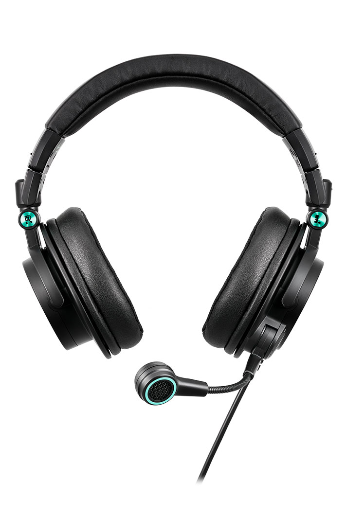 Des éclats métalliques du Miku Green sur le tour des coques, les glissières du bandeau et les indicateurs G/D au bandeau orné de motifs inspirés par les accessoires de coiffure de Miku, chaque détail reflète sa signature graphique.