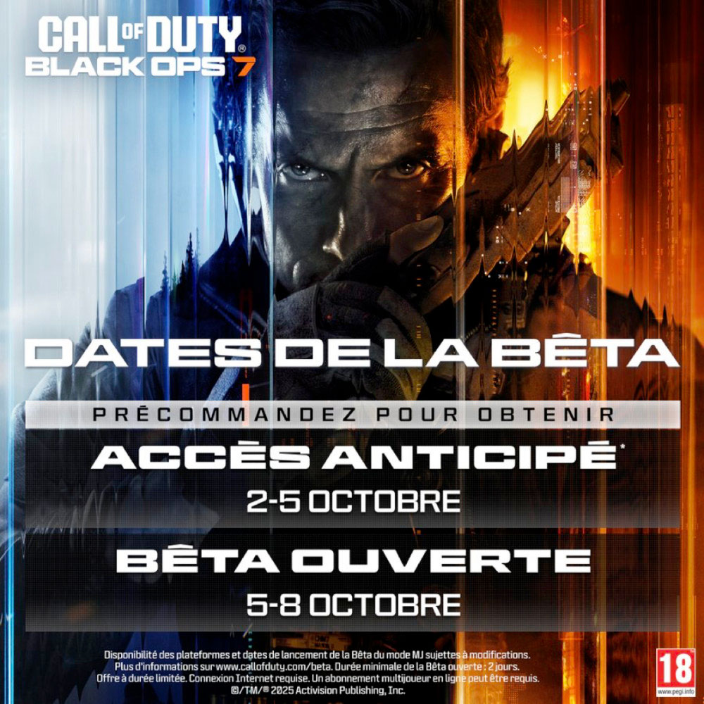 La Bêta de Black Ops 7, divisée en deux phases (accès anticipé et bêta ouverte), se déroulera du 2 au 8 octobre.