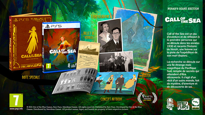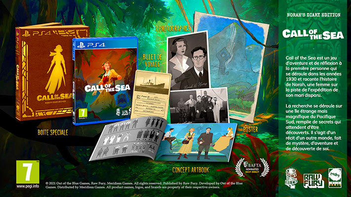 Développée par le studio Out of the Blue et publiée par Raw Fury, l’édition physique spéciale de Call of the Sea sera lancée cet hiver. Meridiem Games gérera la conception, la fabrication et la distribution de l’édition physique à travers l’Europe. Microids Distribution France assurera la distribution en France.