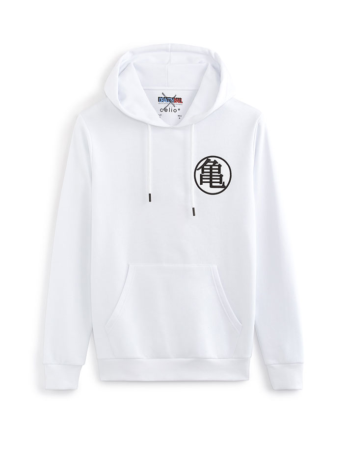 - Muten Roshi : Le sweatshirt blanc représente Tortue Géniale, mentor et ami de Son Goku, accompagné du sigle de son école : le kanji de la tortue.