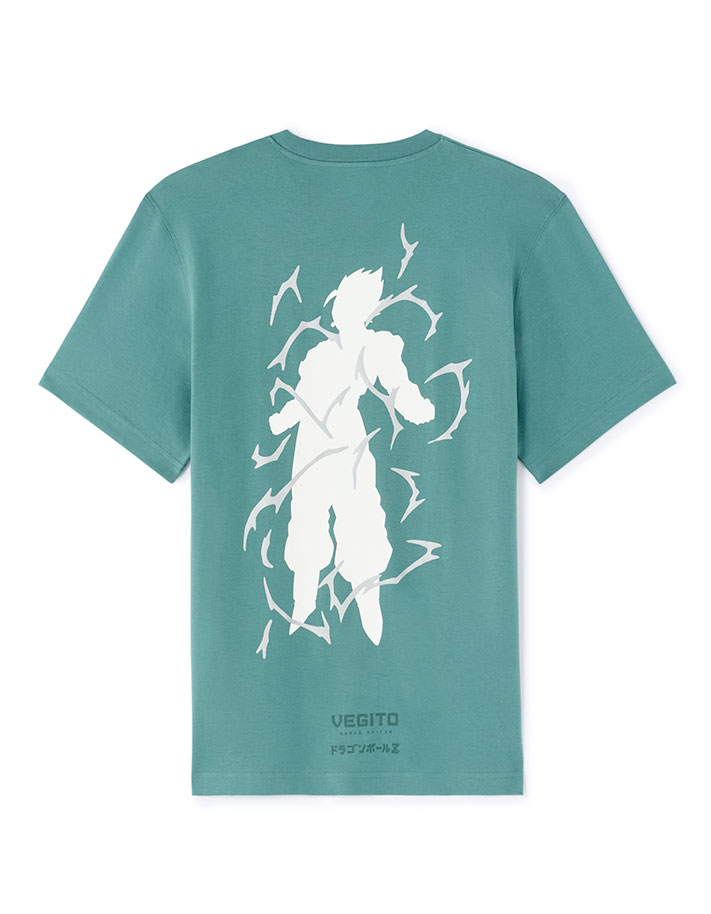 L’une des transformations les plus iconiques de la série prend place sur ce T-shirt vert. Sa silhouette est aussi bien à l’avant au niveau du cœur, qu’à l’arrière, pour que Super Végéto soit visible de tous !