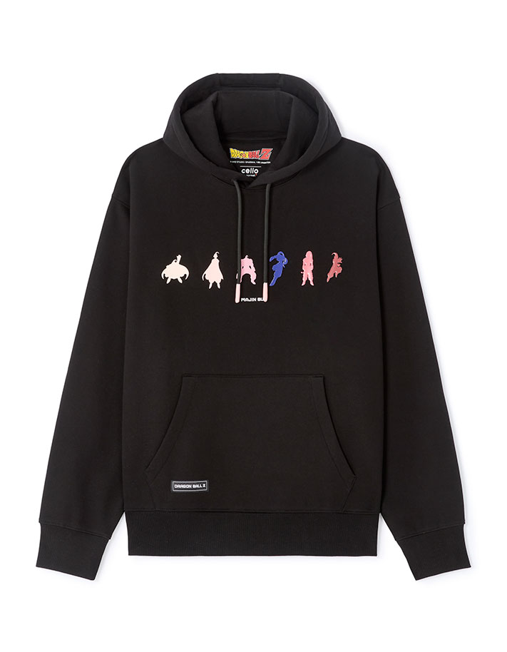 Ce sweatshirt noir est décoré des silhouettes des formes de Buu l’antagoniste principal de la dernière partie de Dragon Ball Z. Ces six silhouettes de couleur à l’avant sont accompagnées de l’inscription Majin Buu.
