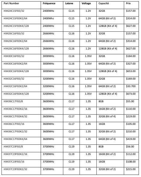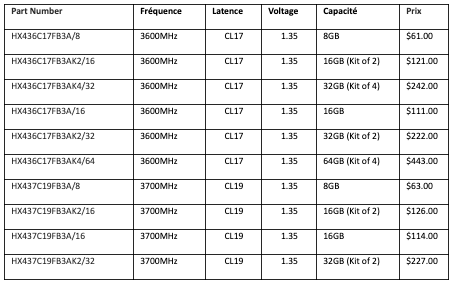 FURY DDR4 & FURY DDR4 RGB 3600MHz et 3733MHz vitesses – Disponibles en janvier à partir de 70.00$