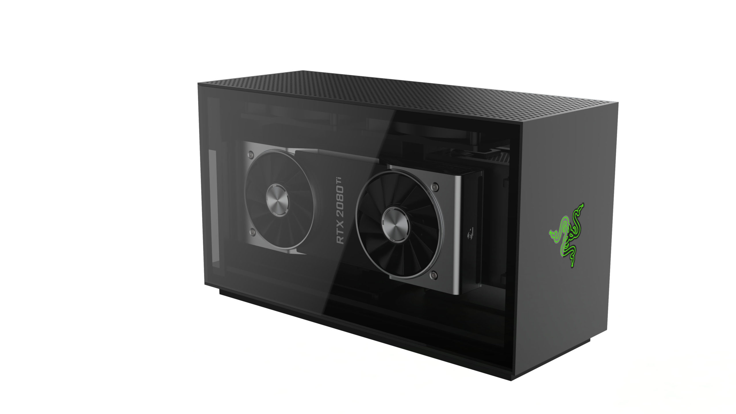 Le châssis ultra-compact est un bloc tout en aluminium flanqué de verre trempé des deux côtés, mettant en valeur le GPU dans toute sa splendeur, avec une conception d’aération ouverte sur la partie supérieure pour maintenir un refroidissement constant. L’arrière dispose d’un mécanisme de « traîneau » verrouillable et coulissant qui s’ouvre avec un minimum d’effort, permettant un accès rapide aux composants internes sans avoir besoin d’outils.