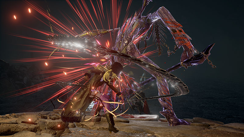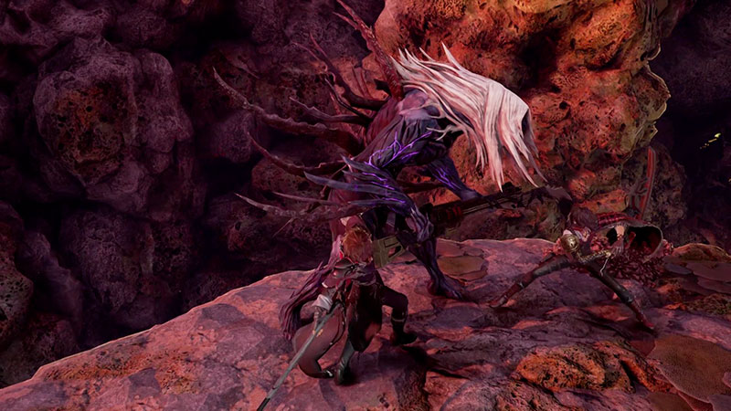 Par ailleurs, de nombreuses armes seront disponibles dans Code Vein. L’épée qui se manie à une seule main possède sa propre attaque spéciale appelée Sunset Sword, qui permet au joueur de sauter par-dessus son ennemi et abattre son épée sur ce dernier. Les attaques chargées des armes Braodsword et Hanemukuro ont une grande influence sur les opposants. Le Zweihander, l’attaque spéciale de l’épée qui se manie à deux mains, permet à son utilisateur de poignarder de loin l’ennemi en avançant vers lui. Les attaques Nagimukuro et Warped Blade sont caractéristiques de l’épée à deux mains grâce à la possibilité qu’elles offrent en termes de mouvements.