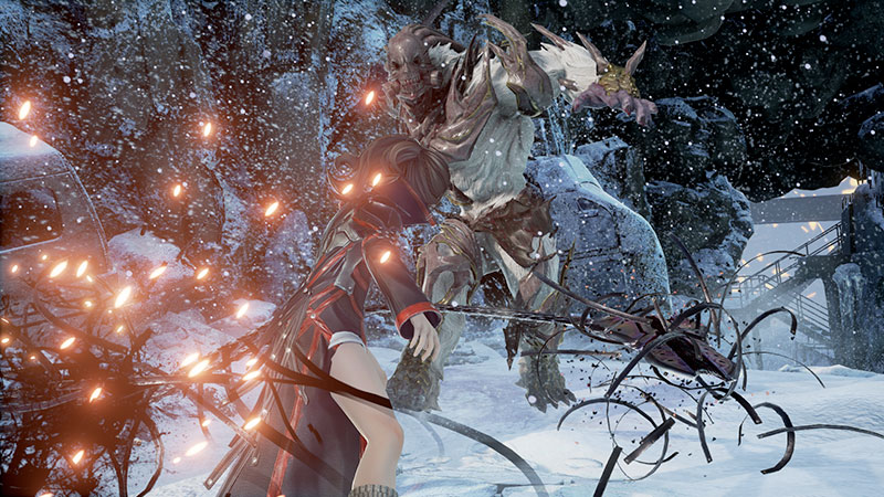 Par ailleurs, de nombreuses armes seront disponibles dans Code Vein. L’épée qui se manie à une seule main possède sa propre attaque spéciale appelée Sunset Sword, qui permet au joueur de sauter par-dessus son ennemi et abattre son épée sur ce dernier. Les attaques chargées des armes Braodsword et Hanemukuro ont une grande influence sur les opposants. Le Zweihander, l’attaque spéciale de l’épée qui se manie à deux mains, permet à son utilisateur de poignarder de loin l’ennemi en avançant vers lui. Les attaques Nagimukuro et Warped Blade sont caractéristiques de l’épée à deux mains grâce à la possibilité qu’elles offrent en termes de mouvements.