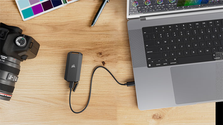 CORSAIR EX300U SSD externe USB – Montage magnétique pratique compatible MagSafe pour un stockage rapide où que vous soyez