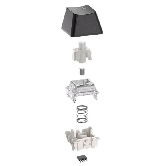Les switchs CORSAIR MGX vous donneront également accès à un nouveau mode Rapid Trigger, dont vous pourrez profiter rapidement après le lancement du K70 MAX. Ce mode propose une hyper-réactivité par touche afin de vous donner l’ascendant dans les FPS et les jeux d’action rapide en général. Avec Rapid Trigger, les touches sont réinitialisées immédiatement lorsqu’elles remontent, ce qui donne au K70 MAX un clair avantage sur les claviers mécaniques traditionnels en matière de pressions répétées et rapides et de changements d’entrée. La fonctionnalité Rapid Trigger du K70 MAX sera proposée dans une mise à jour du micrologiciel du K70 MAX dans le courant du T3, et la personnalisation complète de Rapid Trigger via iCUE sera, quant à elle, disponible cet automne.