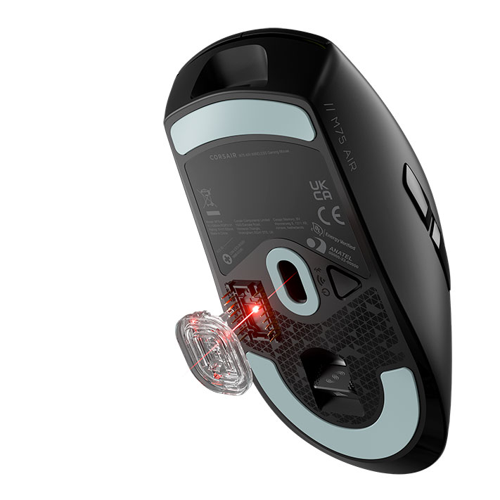 Avec la M75 AIR, se déplacer et viser devient un jeu d’enfant. Vos adversaires n’auront pas vu le coup venir. Les pieds de souris 100 % PTFE offrent une glisse incroyablement douce sur toute surface de jeu, ne laissant rien s’interposer entre vous et les manœuvres impressionnantes de la souris. Un capteur optique CORSAIR MARKSMAN 26K DPI ultraprécis suit parfaitement les mouvements et micro ajustements, même les plus imperceptibles.