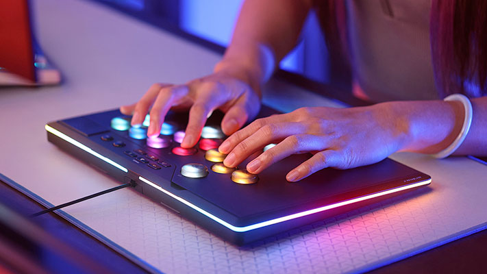 Avec son RGB LightEdge à 360°, ses 15 touches individuellement rétroéclairées et sa plaque supérieure en aluminium amovible pour la personnalisation, les joueurs peuvent créer leur entrée personnalisée avant d’affronter la compétition. Les utilisateurs peuvent également programmer les 8 touches G et enregistrer jusqu’à 5 profils dans la mémoire embarquée. La Novablade Pro est compatible avec les consoles PS5® et PS4®, ainsi qu’avec les PC.