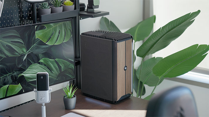 Des touches de signature telles que l’éclairage programmable du panneau avant et du sous-éclairage, ainsi que le projecteur d’E/S arrière activé par le toucher, reviennent pour offrir une facilité d’utilisation et de personnalisation. Logé dans un châssis compact en aluminium recyclé, le CORSAIR ONE a600 est disponible dans les finitions Metal Dark et Wood Dark. La variante Wood Dark présente un accent en bois véritable certifié FSC qui apporte une élégance naturelle à n’importe quelle configuration.