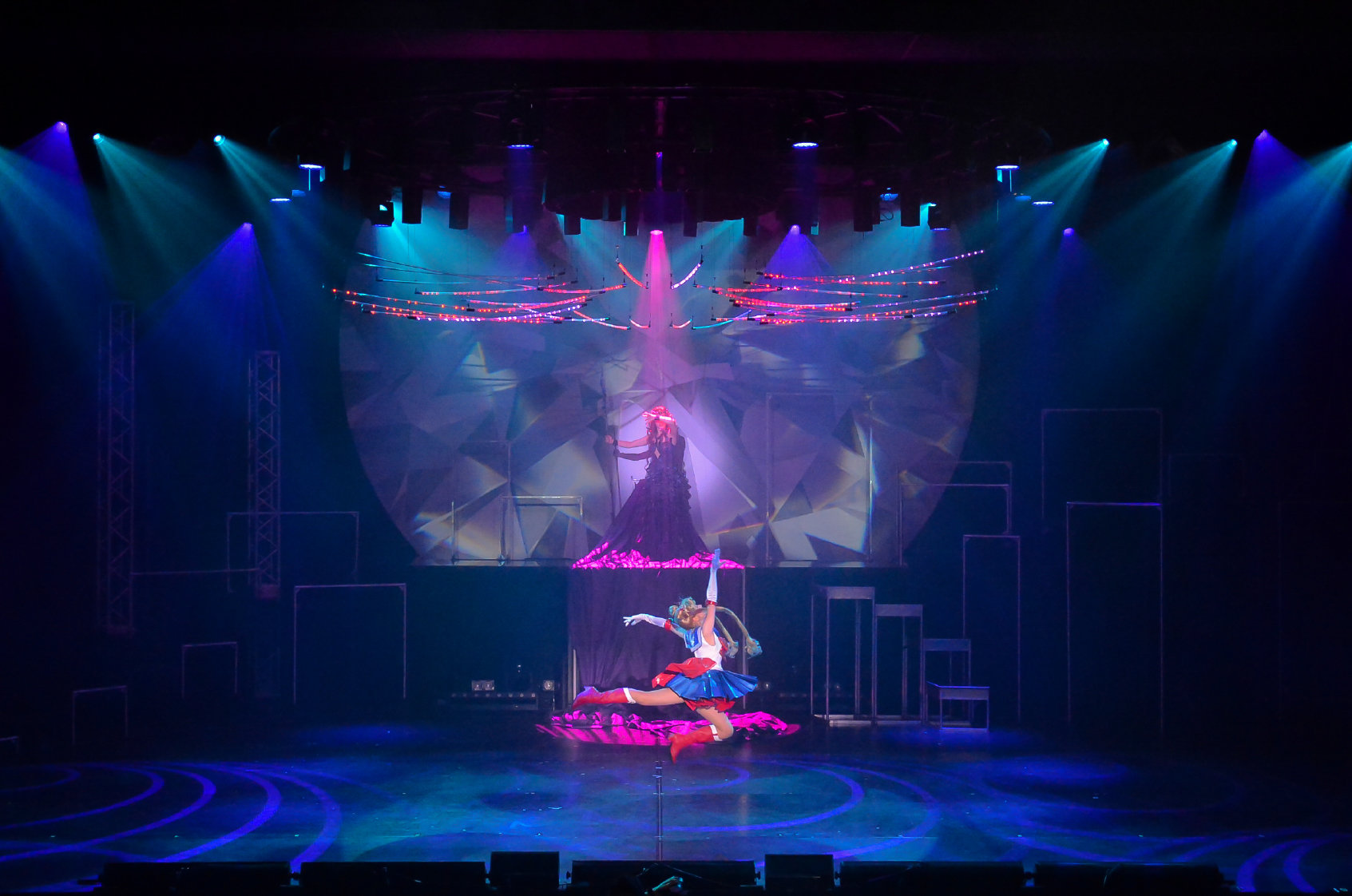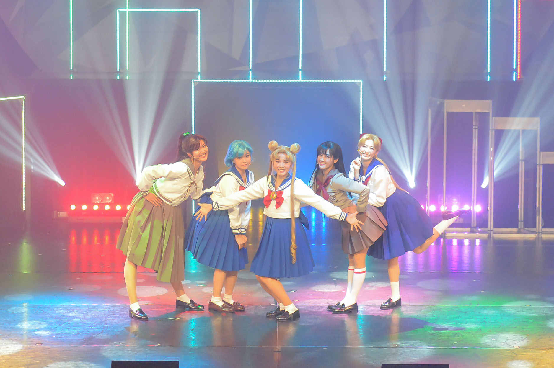 L’illusion des personnages est parfaite avec une Usagi toujours aussi fofolle, et ses amis. Les comédiennes/danseuses prennent les pauses exactes des héroïnes ce qui est bluffant par moment, tout comme leurs voix. Le show est entièrement en japonais, mais ne vous inquiété pas, il fait la par belle au mime. Il n’est donc pas nécessaire de comprendre le japonais pour pouvoir suivre la spectacle. Cependant, si vous ne connaissez pas l’univers de Sailor Moon, il se peut que vous soyez un peu déboussolé. Sinon, seules les chansons sont chantées, le tableaux de danses sont pour la plupart muets ou parsemé de petits cris et phrases emblématiques de la saga.
