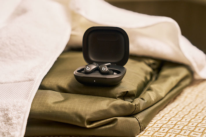 Le nouvel étui de charge est 17 % plus compact que celui des Beats Fit Pro. Il résiste aussi à l’eau et à la transpiration conformément à la norme IPX4.