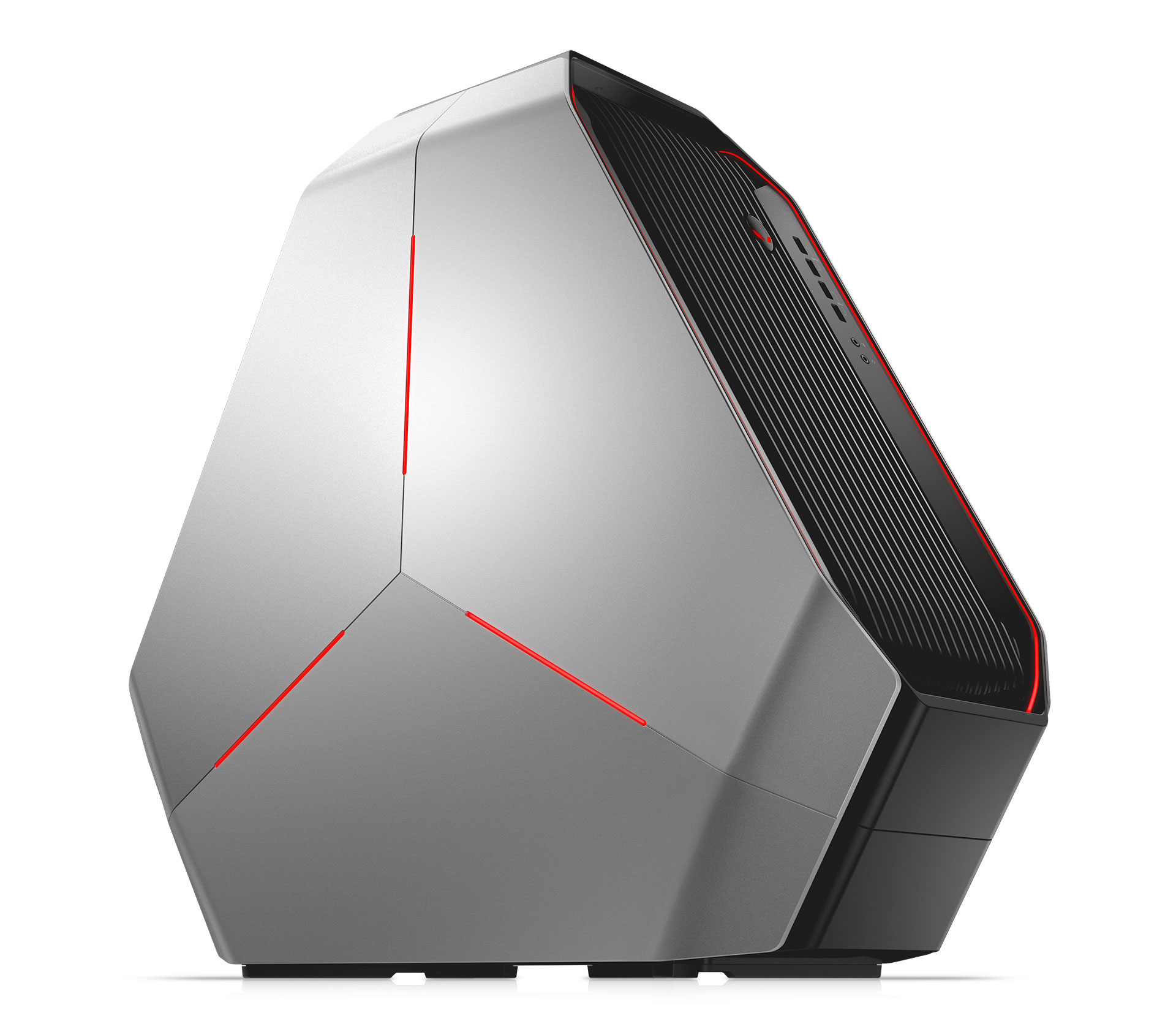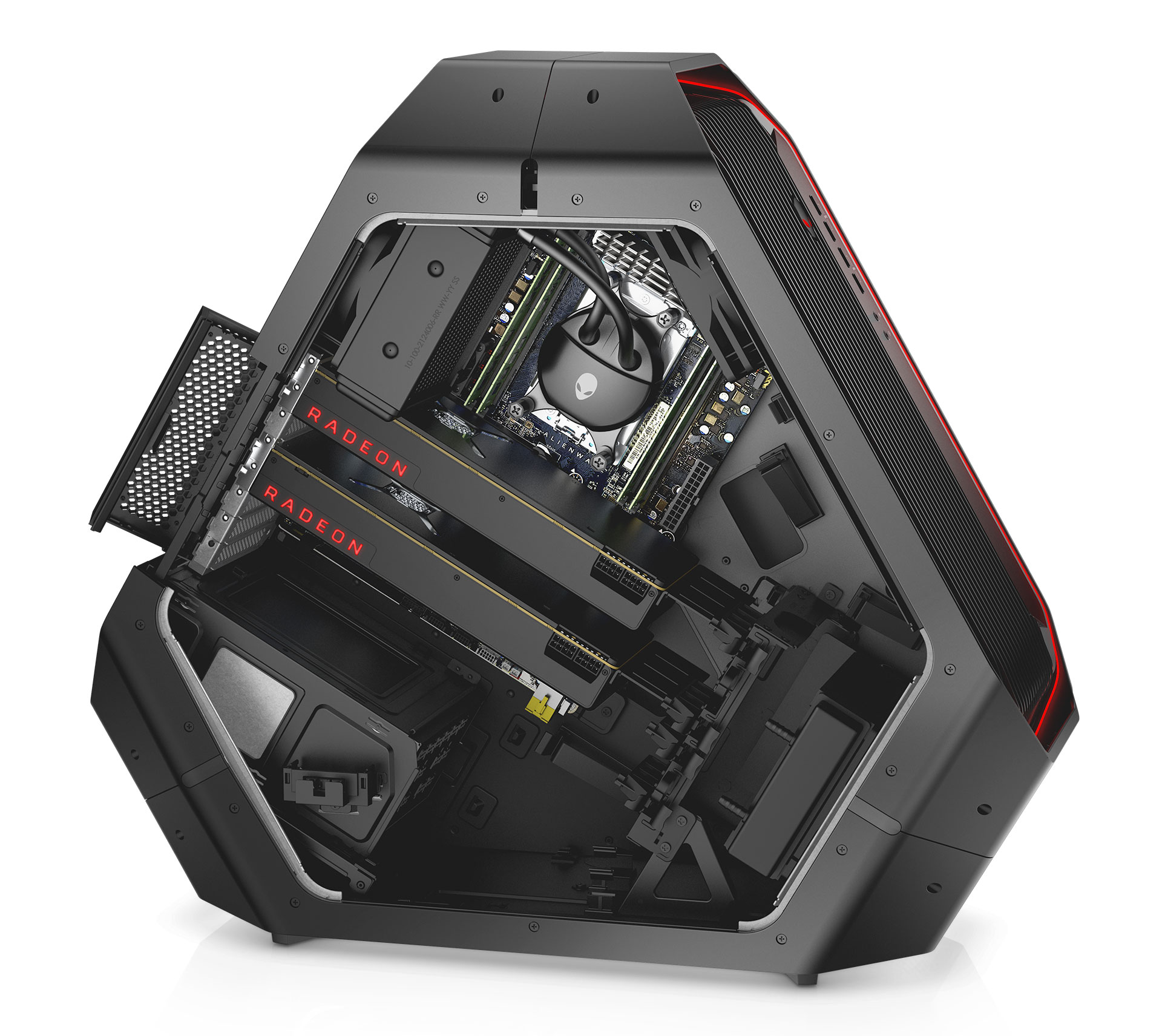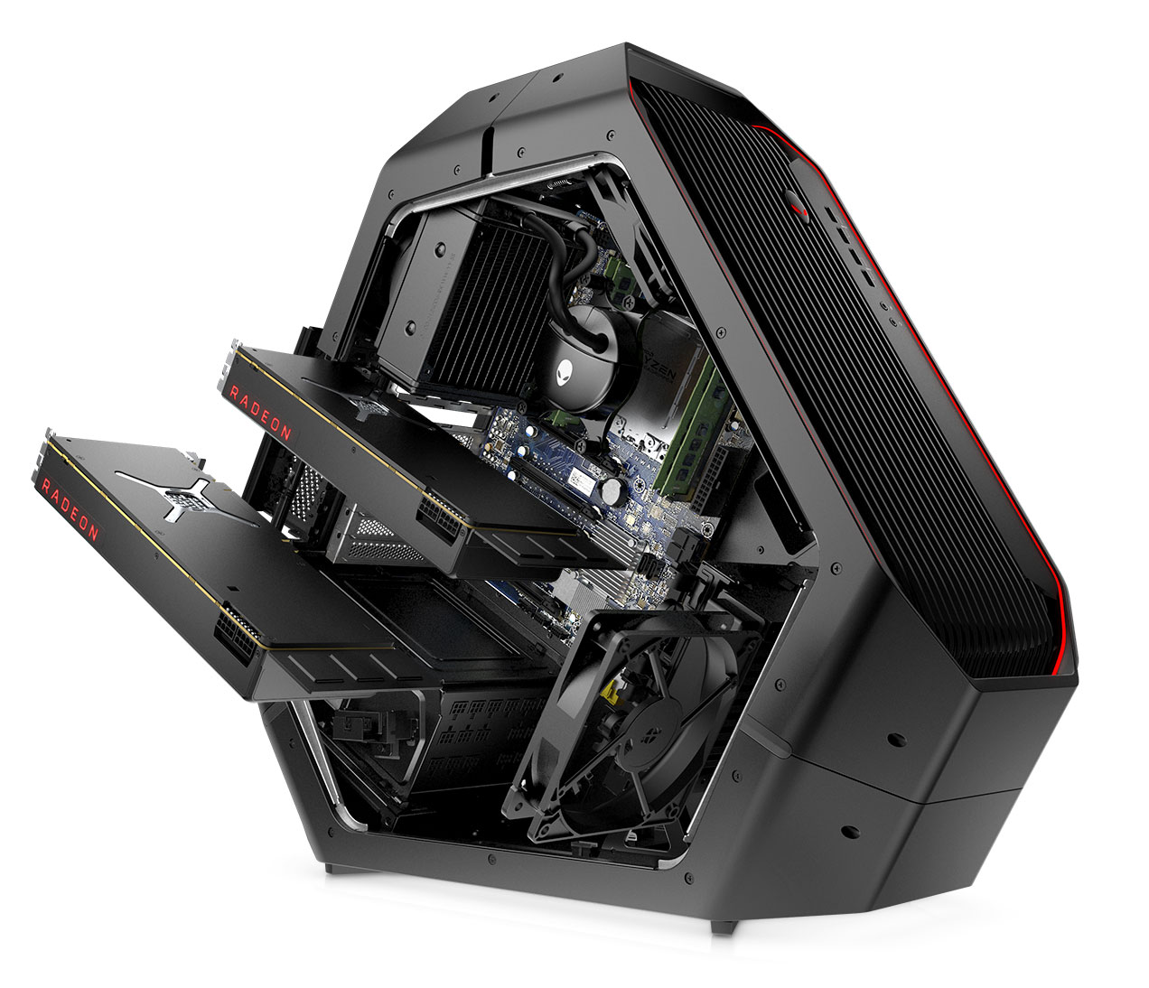 Reconnaissable en un coup d’œil grâce à son châssis triangulaire emblématique, l’Area-51 édition Threadripper 2nde génération intègre les toutes dernières technologies et offre un design évolutif et ne nécessitant pas d’outils pour le faire évoluer. Équipé de l’unité de refroidissement liquide Alienware la plus puissance à ce jour, il a été pensé pour assurer une gestion thermique permettant des améliorations ultérieures. L’Area-51 prend en charge les configurations les plus performantes notamment la NVIDIA SLI avec les toutes dernières technologies graphiques GeForce RTX et AMD Radeon Crossfire, qui permettent de tripler et quadrupler les configurations graphiques grâce à un jeu de puces prenant en charge jusqu’à 64 voies PCIe Gen 3. Sa forme offre à la fois d’importants avantages thermiques par rapport au rectangle classique et une excellente ergonomie pour les utilisateurs. Vous n’aurez plus à vous mettre à genoux pour accéder aux ports du panneau avant ou aux câbles arrière.