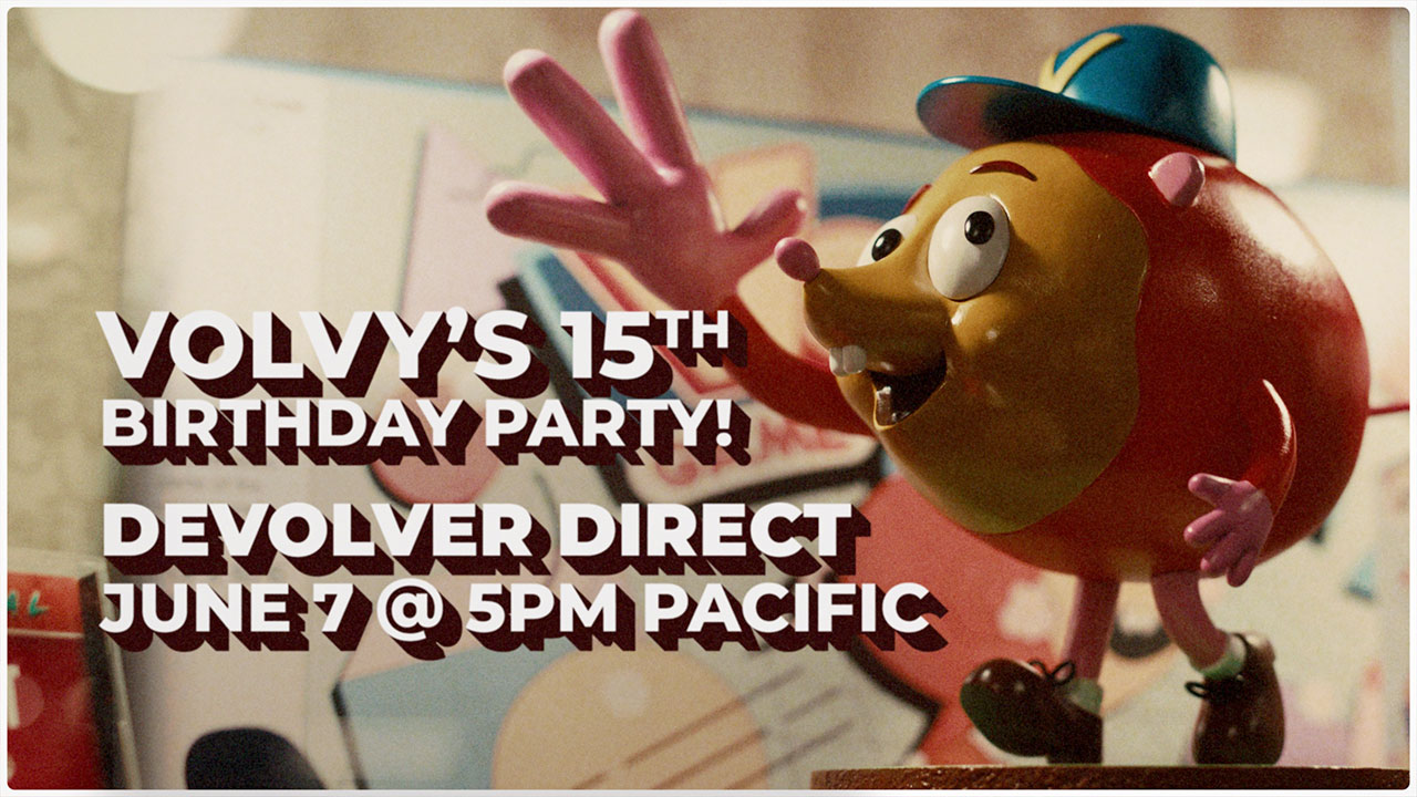 Devolver Digital vous invitent sur devolverdirect.com le 7 juin à partir de 2 heures du matin en France pour fêter les 15 ans de Volvy.