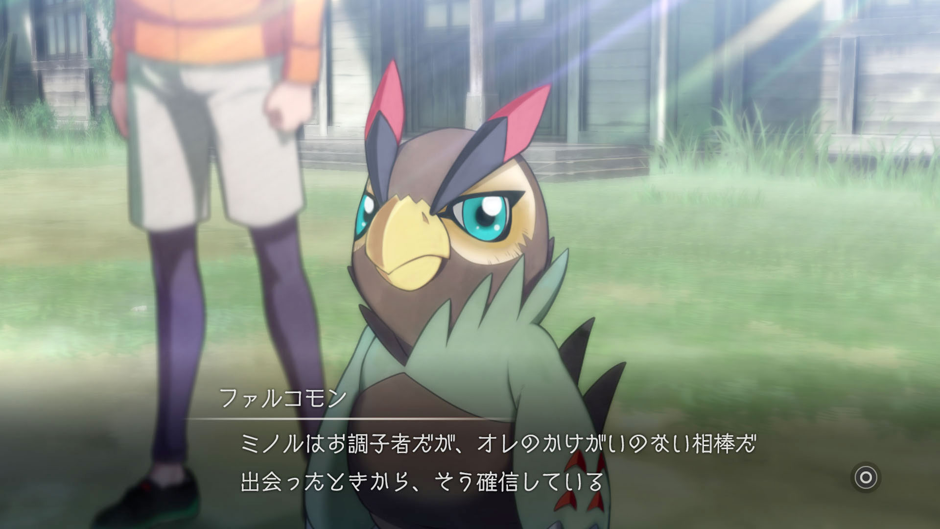 - Falcomon : un type oiseau venant des hautes montagnes, il a un fort charactère et aide Minoru dans son désordre. Cependant, il peut parfois être plus maladroit que lui.
