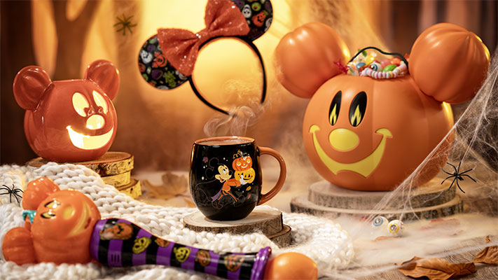 Pour prolonger le plaisir, une collection spéciale aux couleurs d’Halloween proposera un assortiment de souvenirs irrésistibles, parfaits pour une récolte de friandises réussie. Parmi eux, une tasse à l’effigie de Mickey Mouse en tenue d’halloween, d’un serre-tête illustré de citrouilles aux larges sourires, d’un seau à bonbon Mickey en forme de citrouille et de nombreux autres produits.