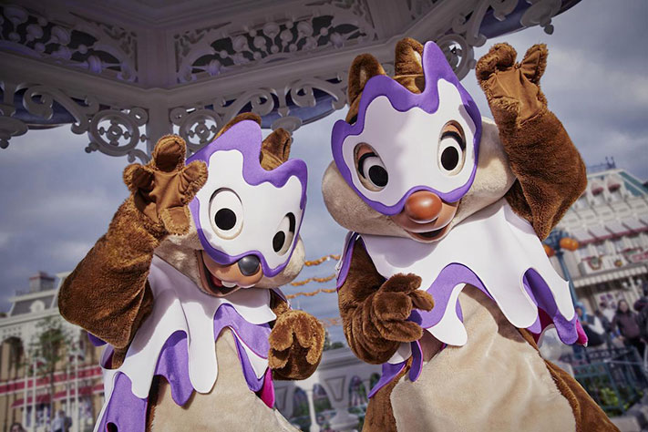 Disneyland Paris se transformera avec un décor et une ambiance envoûtante d’Halloween : 330 citrouilles aux larges sourires, entourées de près de 175 mètres de guirlandes lumineuses et de 13 262 fleurs et feuillages, ainsi que plus de 50 lanternes, revêtiront les lieux d’un flamboyant manteau automnal. Sans oublier les adorables petits spectres qui accueilleront les visiteurs dès l’entrée du Parc. Dans cette atmosphère follement amusante, les farceurs de tout âge pourront rencontrer l’effrayante équipe des Méchants Disney – réunissant Cruella, Maléfique, Jafar, Gaston, le Capitaine Crochet, ou encore la Reine de Cœur – et pour la première fois Mère Gothel du film d’animation de Walt Disney Animation Studios : Raiponce. Cette apparition inédite sera une occasion unique d’échanger sur le secret d’une jeunesse éternelle, et peut-être d’immortaliser ce souvenir. Parmi d’autres nouveautés, les visiteurs pourront retrouver à Frontierland Miguel du film d’animation des studios Pixar : Coco, revenant de son expérience au Pays des Morts – un endroit aussi étonnant que coloré – ou bien admirer la nouvelle tenue de vampire de Stitch paré pour faire la tournée de Discoveryland.