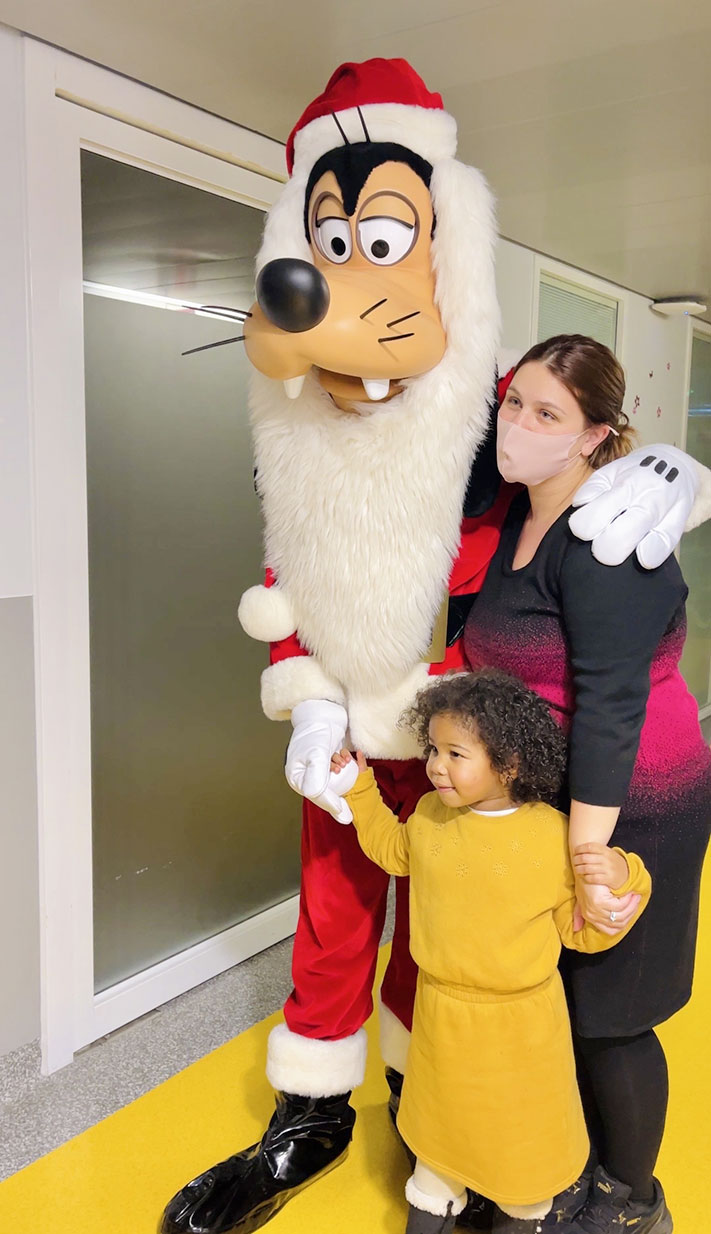 Le 25 décembre, le Père Noël Dingo et des Disney VoluntEars ont apporté du bonheur, de la magie, et des cadeaux aux enfants hospitalisés du Grand Hôpital de L’Est Francilien à Jossigny.