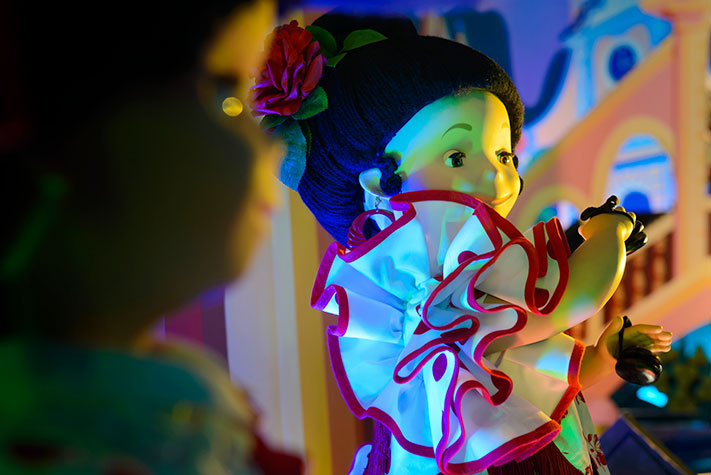 Walt Disney Imagineering Paris a collaboré avec les ateliers centraux et de maintenance de Disneyland Paris pour maintenir l’héritage artistique unique “Disney” de l’attraction. De la finition des poupées, la mise en peinture de leur visage, en passant par la restauration de tous les costumes et accessoires, un large éventail d’expertises a contribué à réaliser cette tâche colossale. Au total, plus de 300 poupées Audio-Animatronics, qui représentent des enfants du monde entier, ont été rafraîchies, et il faut ajouter à cela toutes les figurines d’animaux, les accessoires animés, plus d’une centaine de jouets… L’éclairage de l’attraction a également été modernisé et, à l’extérieur, les couleurs de la façade conçue à l’origine par les légendes d’Imagineering Rolly Crump et Mary Blair pour Disneyland Resort en Californie ont été ravivées.
