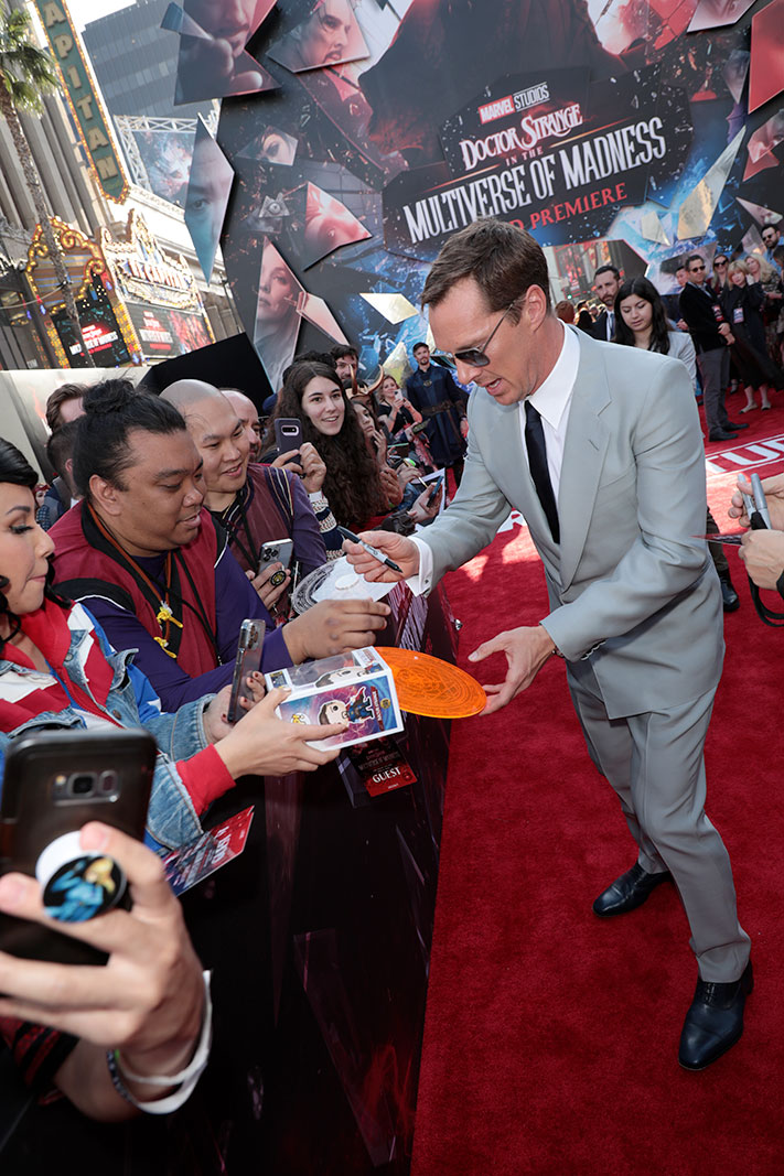 Etaient présents les stars Benedict Cumberbatch, Elizabeth Olsen, Benedict Wong, Xochitl Gomez, Rachel McAdams, Jett Klyne, Julian Hilliard, Sheila Atim, Adam Hugill et Charlie Norton, le réalisateur Sam Raimi, le producteur Kevin Feige, les producteurs exécutifs Louis D’Esposito, Victoria Alonso, Eric Carroll et Scott Derrickson, le scénariste Michael Waldron et ainsi que le compositeur Danny Elfman.