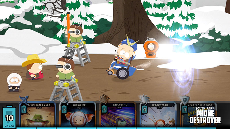 Dans South Park : Phone Destroyer, les joueurs incarnent une nouvelle fois le rôle du « petit-nouveau » et font équipe avec les personnages de South Park dans un nouveau jeu avec des cowboys, des pirates, des cyborgs et même des dieux tout-puissants. Ils doivent créer leur équipe dans cette nouvelle aventure solo dotée d’une histoire originale. Avec du fun omniprésent, des batailles explosives et l’humour mémorable de South Park, South Park : Phone Destroyer propose aux joueurs de construire et faire évoluer leur équipe pour contrôler la véritable force des cartes qu’ils acquièrent.