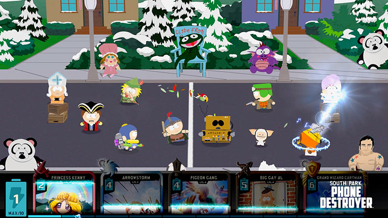Prenant place dans l’univers familier à la série, South Park : Phone Destroyer apporte aux plateformes mobiles une expérience mêlant des collections de cartes les plus scandaleuses qui soient à du combat PvP en temps réel. L’humour South Park, les personnages iconiques, et les combats sous haute tension font de ce jeu une extension authentique de la série TV, en accord avec l’identité visuelle de South Park.