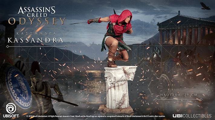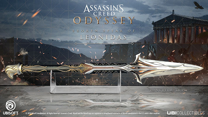 Ubicollectibles annonce également la figurine d’Alexios (haute de 32 cm), la figurine de Kassandra (haute de 29 cm) et la réplique officielle de la Lame brisée de Léonidas (longue de 60 cm) d’Assassin’s Creed Odyssey.