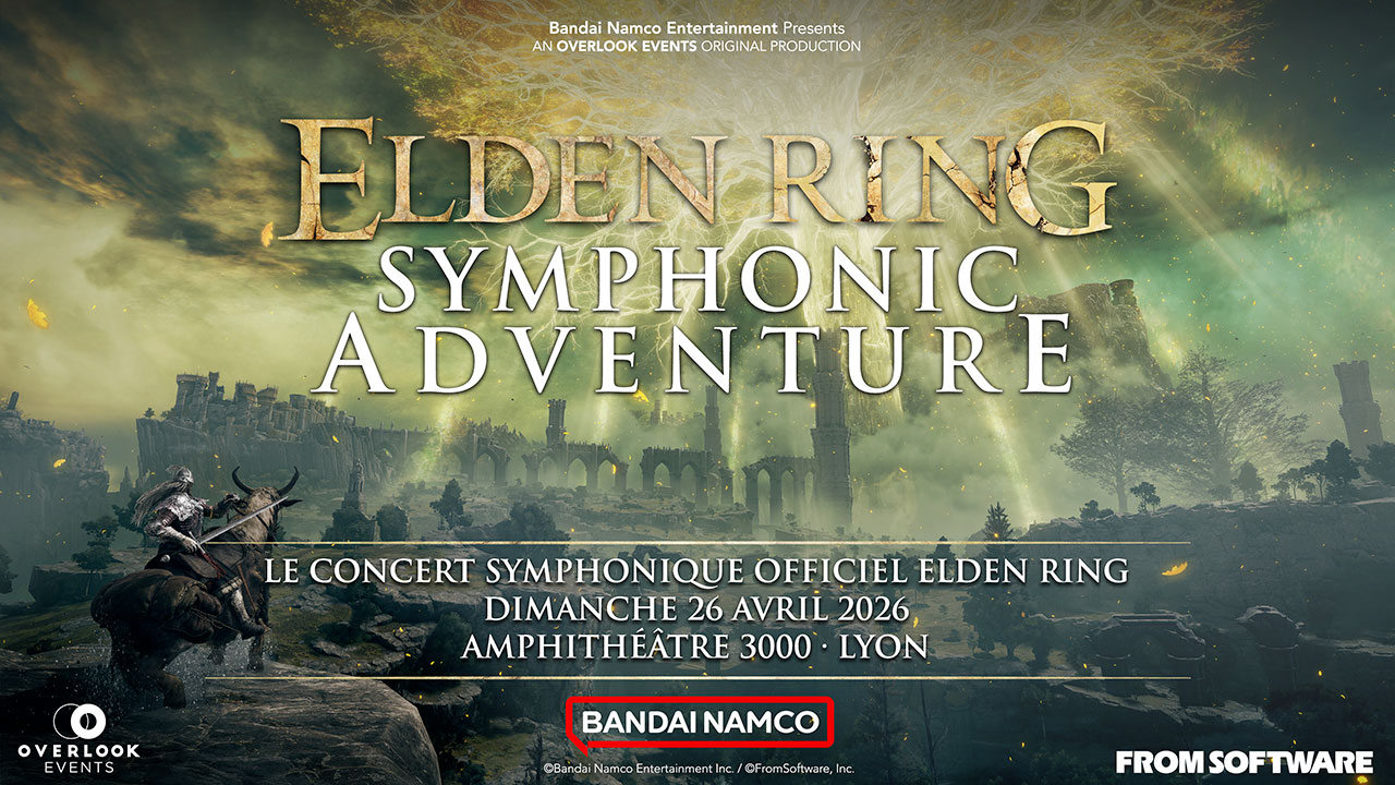 Bandai Namco Entertainment Europe et Overlook Events ont annoncé que le concert immersif officiel ELDEN RING Symphonic Adventure arrivera à Lyon le 26 avril 2026, mettant en lumière le jeu vidéo phénomène ELDEN RING de FromSoftware, créateur de la célèbre série de jeux DARK SOULS.