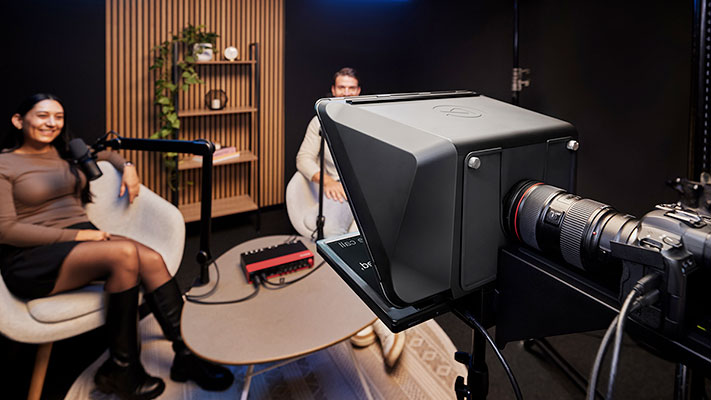 L’écran de 15,6 pouces de Prompter XL – comparable à celui d’un ordinateur portable moderne – garantit une excellente lisibilité, même à l’autre bout du studio. Avec une luminosité de 600 nits, il est 50 % plus lumineux que l’écran de Prompter original, offrant ainsi une visibilité accrue sous les éclairages de studio. Les équipes de production peuvent donc positionner les intervenants librement, sans craindre une perte de clarté du script.