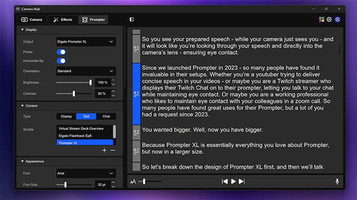 Elgato a dévoilé Prompter XL, un téléprompteur au format studio conçu pour la production de contenu.