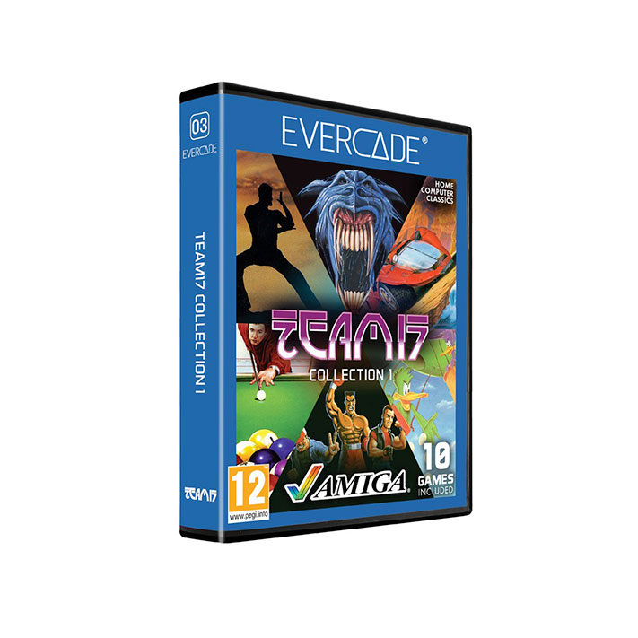 Team17 Collection 1 est quant à elle la troisième cartouche arborant la couleur bleue de la gamme de cartouches « Home Computer Games », introduisant pour la première fois les jeux Amiga dans l’écosystème Evercade.