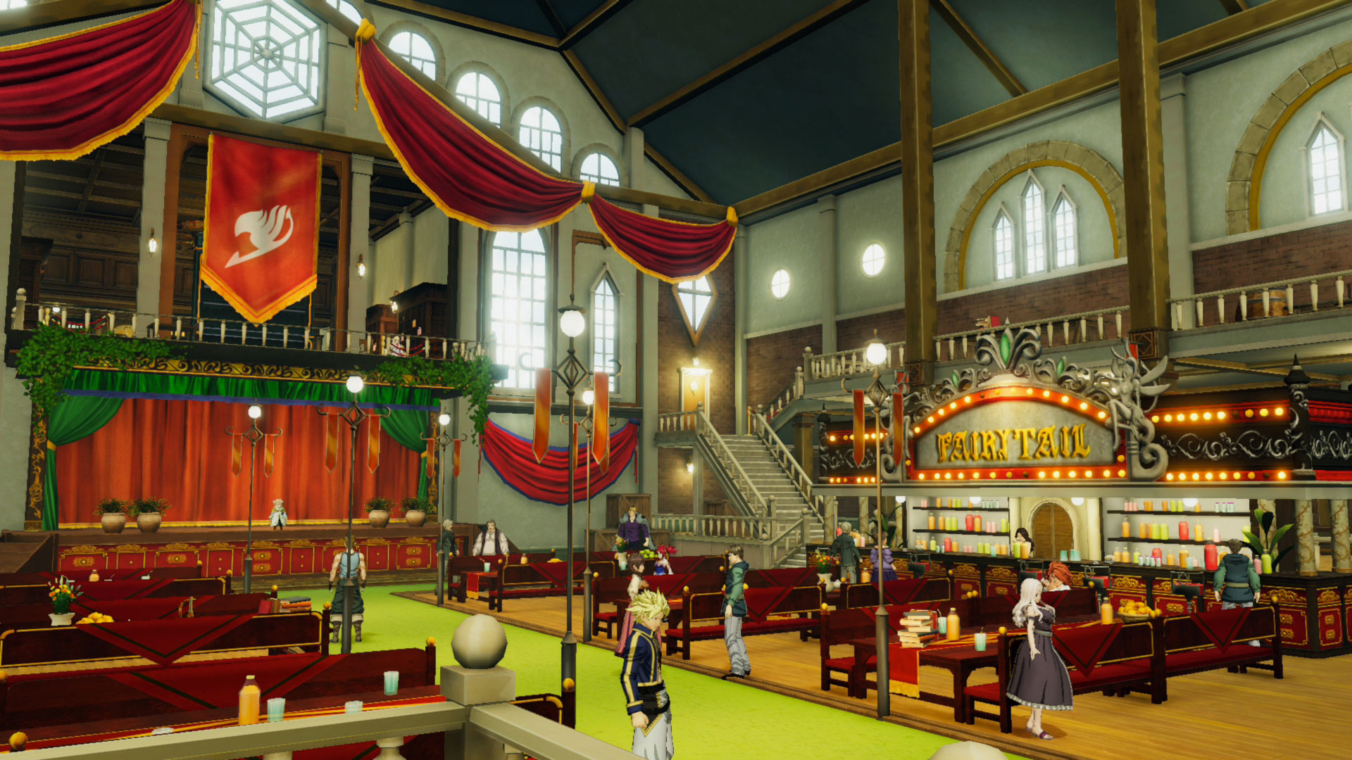 Tout au long de l’aventure de FAIRY TAIL, qui vous transporte de l’île Tenrô au Grand Tournoi de la Magie et plus loin encore, le hall de la guilde est un endroit clé où les membres de votre groupe peuvent se préparer à leurs futures quêtes. À l’intérieur, vous pouvez acheter et échanger une multitude de marchandises, dont des objets à usage unique, des Lacrimas et des matériaux. Il y a même un bar proposant un choix de boissons qui procurent des effets à vos personnages. En économisant votre or pour acheter des améliorations auprès de la guilde, vous pourrez obtenir des objets et des boissons de plus en plus diversifiés, et l’aspect même du hall deviendra de plus en plus extravagant.