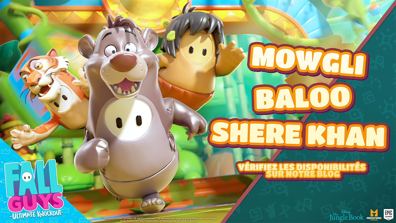 Les joueurs pourront se préparer à faire des ravages aux côtés de leurs personnages favoris du classique animé de Disney, Le Livre de la Jungle, sorti en 1967. À partir d’aujourd’hui, ils peuvent s’équiper pour la Saison 5 de Fall Guys sur le thème de l’aventure dans la Jungle tropicale avec les costumes de Mowgli, Shere Khan et Baloo disponibles dans la boutique du jeu.