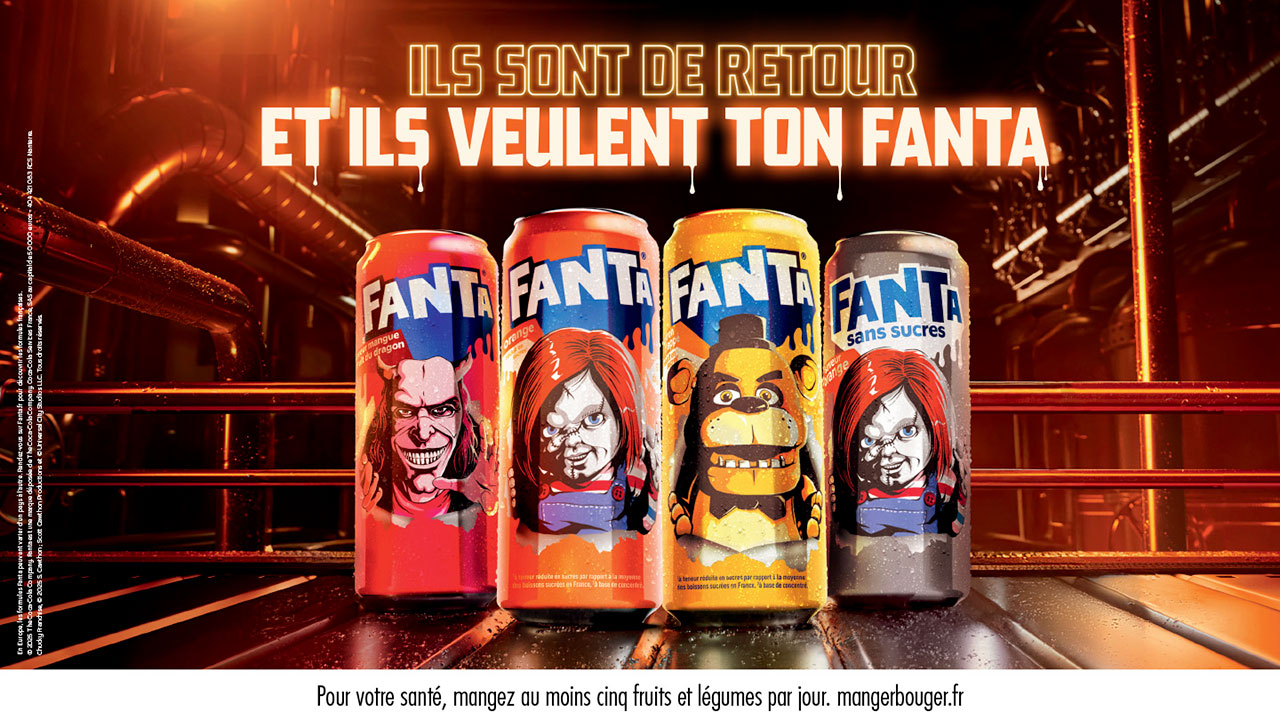 Cette collaboration réunit Chucky (de la franchise Chucky), Freddy Fazbear (Five Nights at Freddy’s 2), The Grabber (Black Phone 2) et M3gan (M3GAN 2.0). Ces personnages monstrueux sont tous animés par la même envie : du Fanta ! Partout dans le monde, les fans pourront suivre leur traque à travers une série d’expériences spécialement conçues pour Halloween.