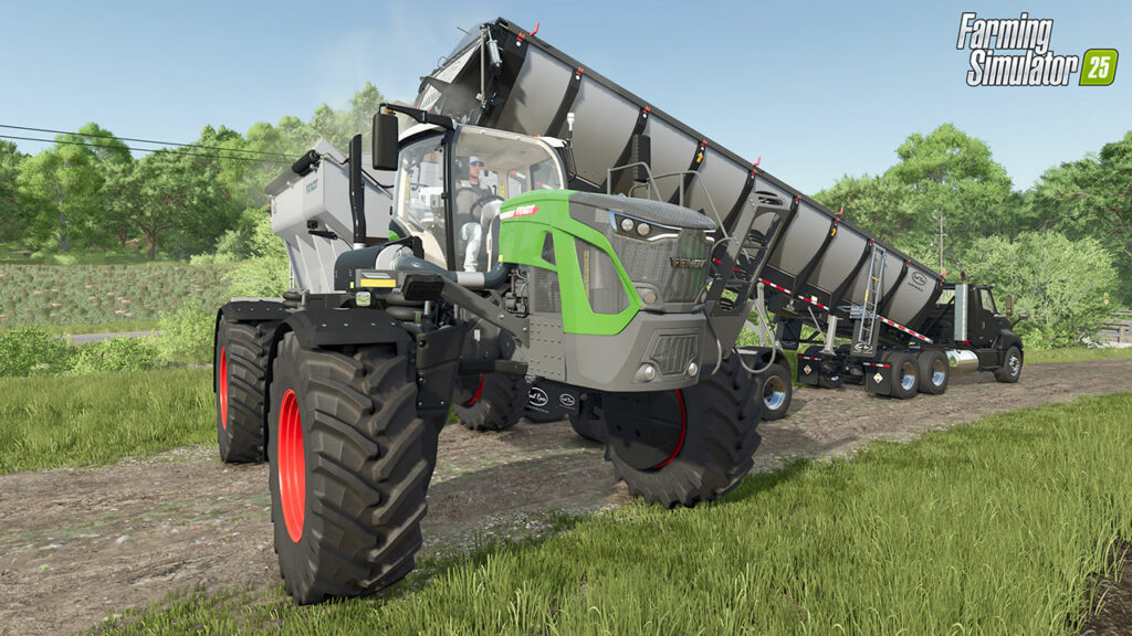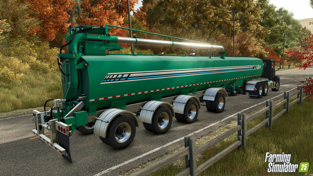 Le souci du détail a également été renforcé : les pulvérisateurs pneumatiques permettent aux agriculteurs de distribuer de l’engrais solide, les remorques sont équipées de bâches de protection déployables pour protéger les récoltes, et les essieux relevables améliorent la maniabilité, en particulier lorsqu’il s’agit de remorquer la plus grande citerne à fumier du jeu : la GEA STR 447.