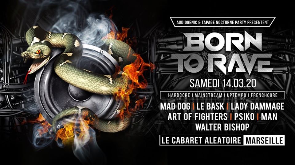 Après son succès en 2019, la tournée Born To Rave revient le samedi 14 mars 2020 au Cabaret Aléatoire à Marseille pour une nuit placée sous le signe de la fête et des musiques électroniques.