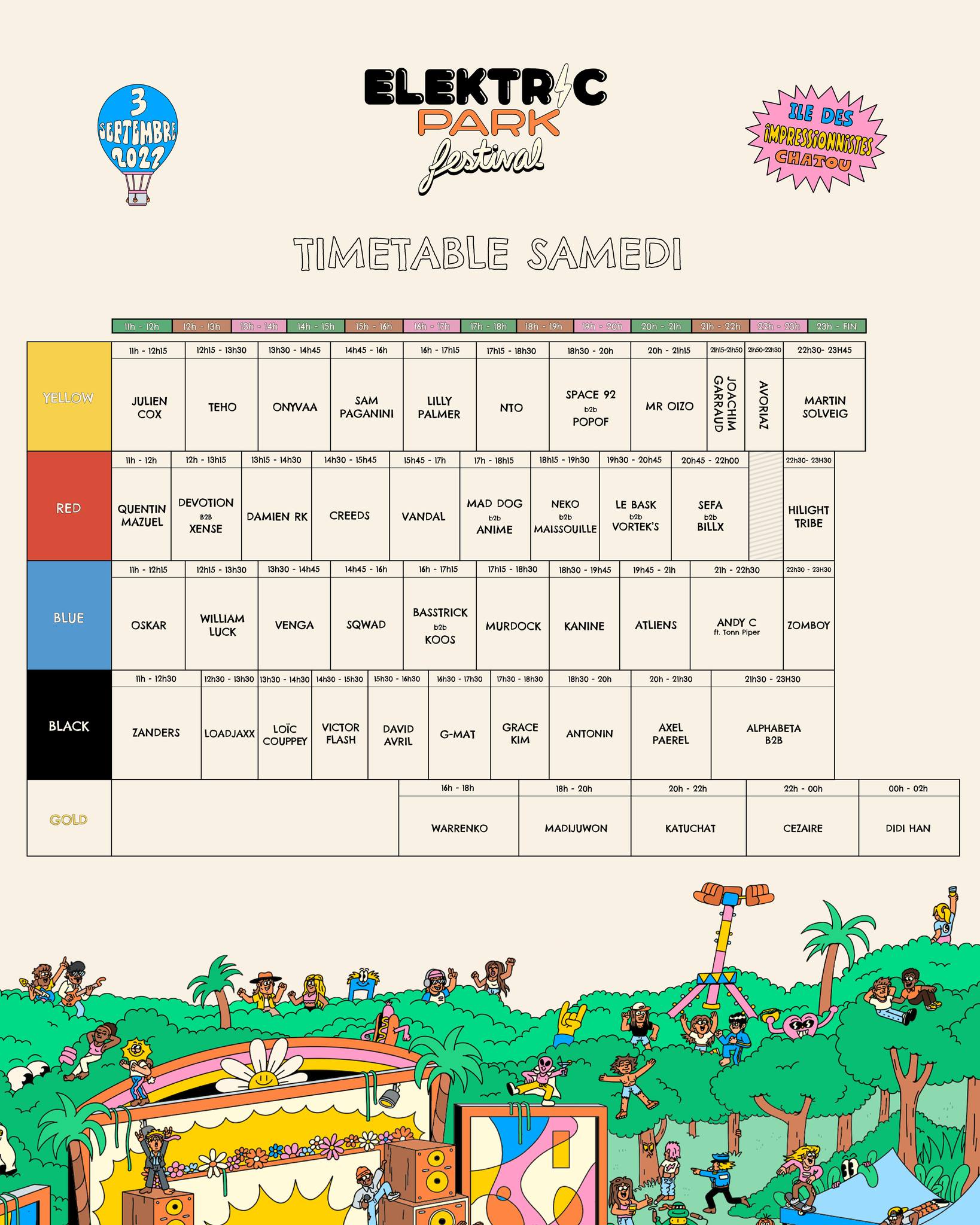 Elektric Park a dévoilé les Time Tables de l’édition 2022 du festival qui aura lieu les 3 et 4 septembre prochain à Chatou.