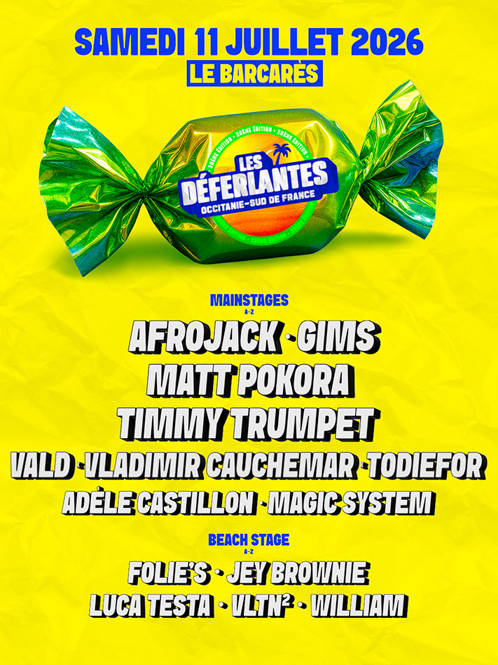 Entre artistes de renommée internationale et révélations de la scène musicale actuelle, découvrez les artistes qui feront vibrer Les Déferlantes du 11 au 13 juillet 2026 au Barcarès.