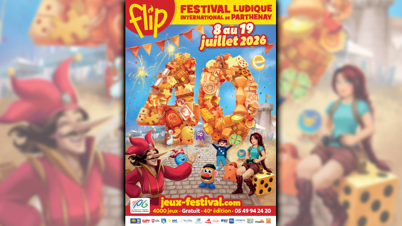 La 40ème édition du Festival Ludique International de Parthenay (FLIP), le plus grand festival des jeux du monde, aura lieu du 8 au 19 juillet 2026.