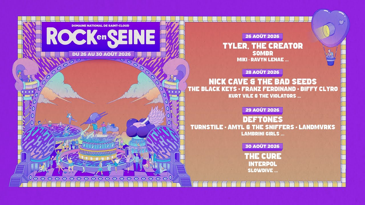 Rock en Seine a dévoilé la programmation de sa 22ème édition qui aura lieu du 26 au 30 août 2026 au Domaine National de Saint-Cloud.