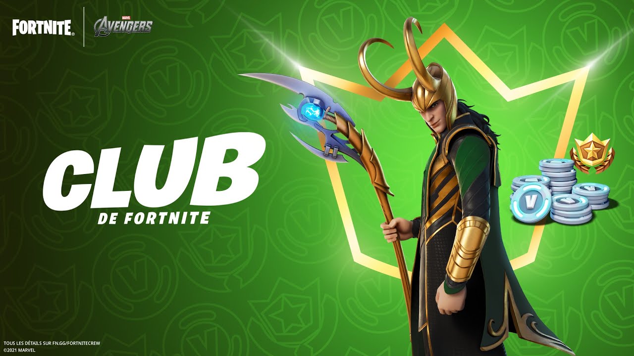 Inspiré par Avengers de Marvel Studios, Loki Laufeyson est la tête d’affiche du pack du Club de juillet 2021, que les membres actifs du Club de Fortnite recevront le 1er juillet vers 2h du matin CEST. Ce pack contient la tenue Loki Laufeyson, son accessoire de dos Cape de Loki emblématique, la pioche Sceptre de Loki (aussi appelé le bâton luisant du destin), le planeur Chariot des Chitauris (qui ne vient ni d’Asgard, ni d’aucun monde connu) et l’écran de chargement L’accueil de Loki.