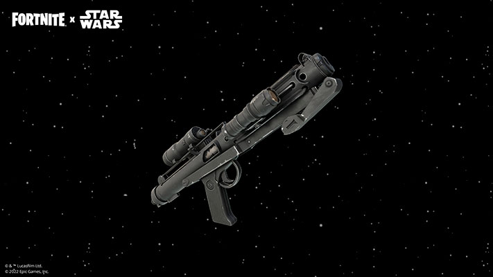 Le fusil blaster E-11 fait également son retour sur l’île ! Pour en trouver un, Fortnite invite les joueurs à se rendre sur l’un des postes de contrôle établis par les Stormtroopers pour retrouver Obi-Wan et l’acheter contre des lingots. Il est également possible d’en trouver dans les coffres ou sur le sol.