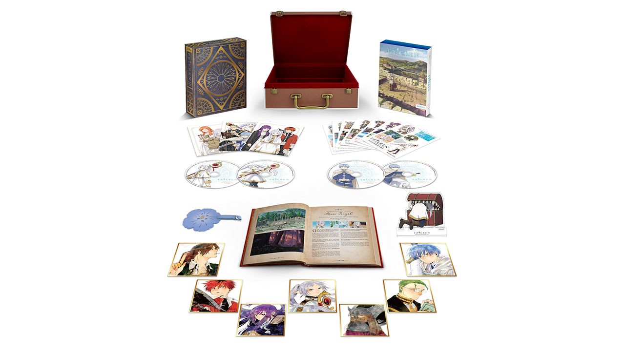 Après avoir édité la première saison en deux coffrets standards, Crunchyroll propose une intégrale collector présentée sous la forme d’une valise, à l’image de celle que transporte l’elfe au cours de son voyage. Outre l’intégrale de la saison 1 en Blu-ray, ce coffret contient de nombreux produits réalisés spécialement pour l’occasion : un standee acrylique, un porte-étiquette à bagage, 7 shikishis (sérigraphie sur planche cartonnée), 7 planches de stickers et 3 cartes postales. Enfin, un artbook de 200 pages couleurs propose de très nombreux croquis, des recherches (personnages, monstres, costumes…), des illustrations, le tout complété d’interviews des voix principales japonaises, du réalisateur, du scénariste et du producteur.