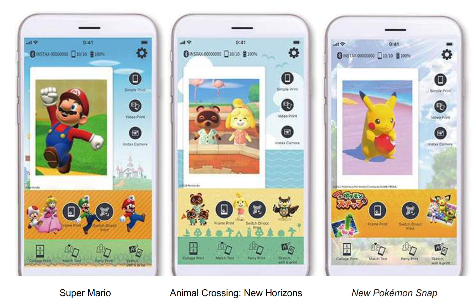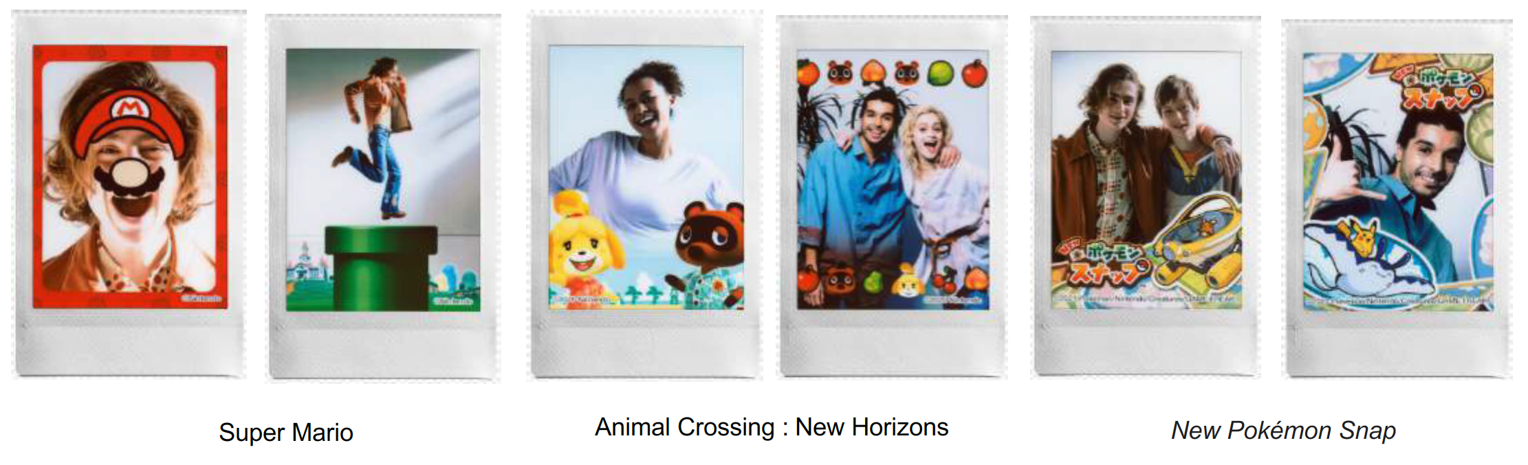 D’une simple lecture d’un QR code affiché sur la Nintendo Switch, l’appli pour smartphone instax mini Link pour Nintendo Switch lance l’impression des captures d’écran (images fixes ou vidéos) issues des jeux de la Nintendo Switch. L’appli sortira le 30 avril 2021, le jour même du lancement du nouveau jeu New Pokémon Snap pour la Nintendo Switch. New Pokémon Snap invite à rechercher des Pokémon, puis les viser et s’amuser de leurs gestes et expressions étonnantes. L’appli entraîne le joueur vers une nouvelle expérience ludique en permettant d’imprimer en instax les meilleurs clichés réalisés au cours du jeu.